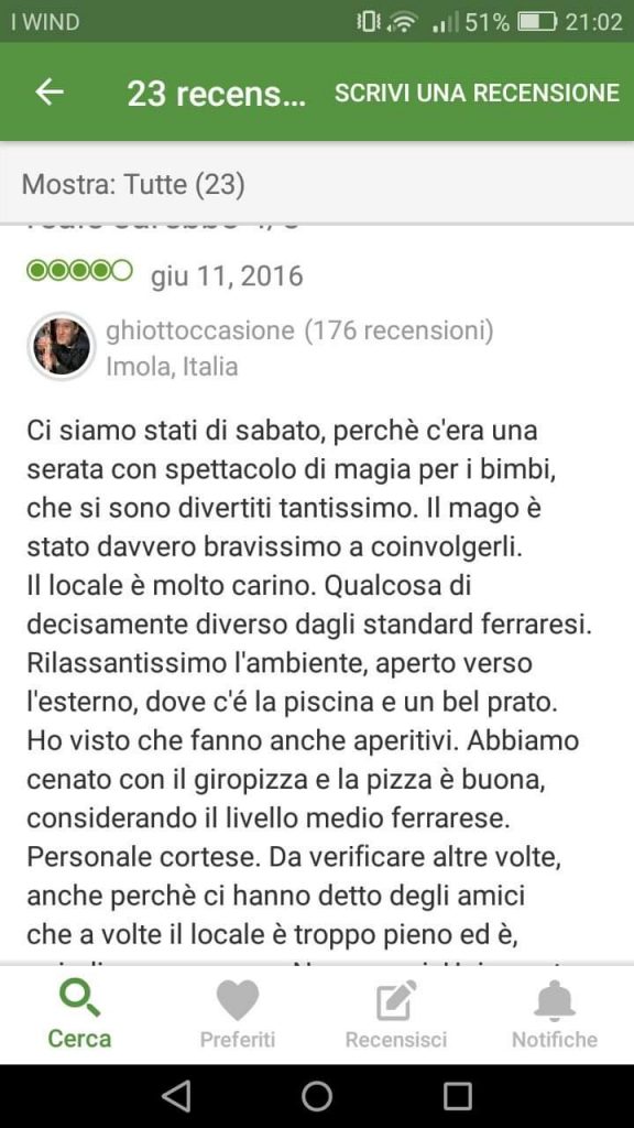 Clicca qui per leggere anche le recensioni che gli utenti hanno pubblicato sulla pagina facebook.