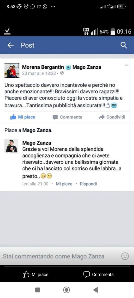 Ecco a voi soltanto alcune delle recensioni di persone che hanno avuto il piacere di assistere ad uno spettacolo di magia del Mago Zanza.